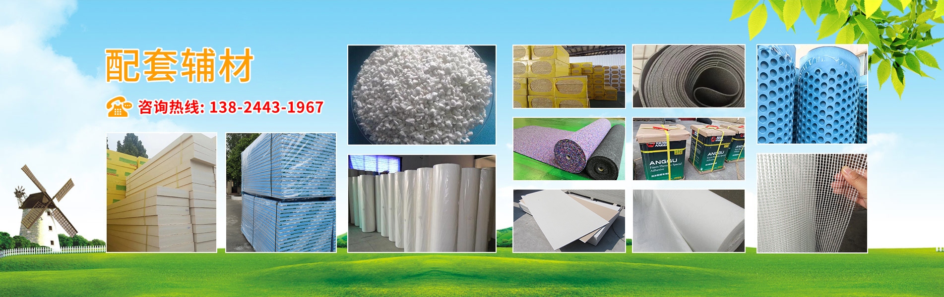 產(chǎn)品有:陶粒、XPS擠塑板、陶砂、無氟co2阻燃板、擠塑復合板。配送材料有:碰焊網(wǎng)、專用膠水、泡沫板、巖棉板、玻璃棉氈、珍珠巖、聚酯無紡布、纖維網(wǎng)格布等。